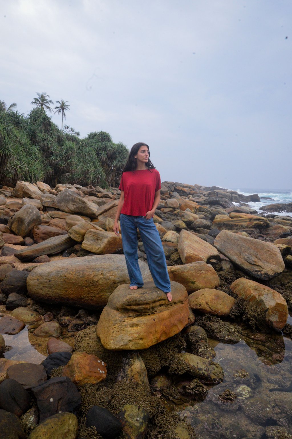 Představ si.. ráno, kdy výběr oblečení přináší klid a energii zároveň a každý krok doprovází lehkost. Dámské oversize tričko se spadeným rukávem podporuje přirozený styl, který nechává vyniknout osobnost bez zbytečných prvků navíc. Minimalistický vzhled bez potisku otevírá prostor pro kreativitu, ať už den směřuje do města, na cestování nebo na pomalé letní odpoledne. Bambusová viskóza je hebká na dotek, příjemně prodyšná a přirozeně se přizpůsobuje pohybu těla, takže pocit svěžesti vydrží po celý den. Lehký oversize střih vytváří moderní siluetu a snadno zapadne do capsule wardrobe, kde funguje jako základní fashion piece pro kombinace s jeans, lněnými kalhotami i sukní. Spadený rukáv podtrhuje uvolněný charakter a zároveň zachovává elegantní linii vhodnou pro každodenní nošení. Pro ženy, které hledají quality bamboo clothing, breathable summer t shirt a timeless minimalist women fashion, představuje model pohodlí, styl a sebevědomý výraz v jednom.