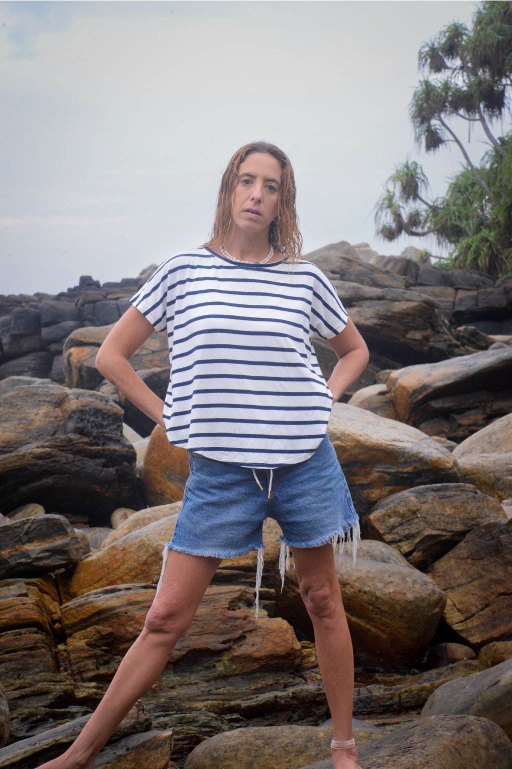 Představ si.. ráno, kdy výběr oblečení přináší klid a energii zároveň a každý krok doprovází lehkost. Dámské oversize tričko se spadeným rukávem podporuje přirozený styl, který nechává vyniknout osobnost bez zbytečných prvků navíc. Minimalistický vzhled bez potisku otevírá prostor pro kreativitu, ať už den směřuje do města, na cestování nebo na pomalé letní odpoledne. Bambusová viskóza je hebká na dotek, příjemně prodyšná a přirozeně se přizpůsobuje pohybu těla, takže pocit svěžesti vydrží po celý den. Lehký oversize střih vytváří moderní siluetu a snadno zapadne do capsule wardrobe, kde funguje jako základní fashion piece pro kombinace s jeans, lněnými kalhotami i sukní. Spadený rukáv podtrhuje uvolněný charakter a zároveň zachovává elegantní linii vhodnou pro každodenní nošení. Pro ženy, které hledají quality bamboo clothing, breathable summer t shirt a timeless minimalist women fashion, představuje model pohodlí, styl a sebevědomý výraz v jednom.