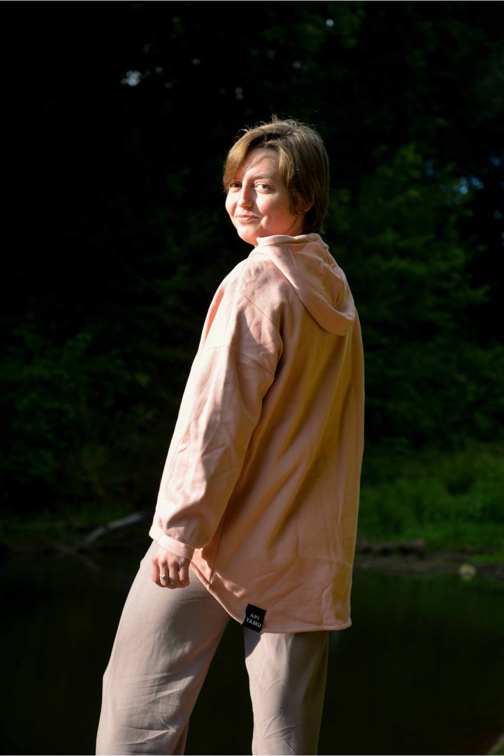 Alis is 180 cm tall, usually she wears a shirt in size L. At pictures she has a hoodie in size M/L.